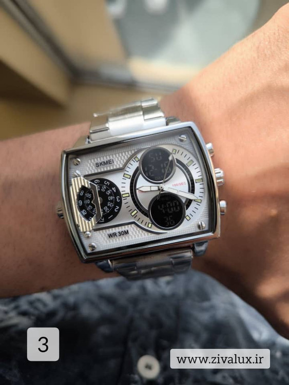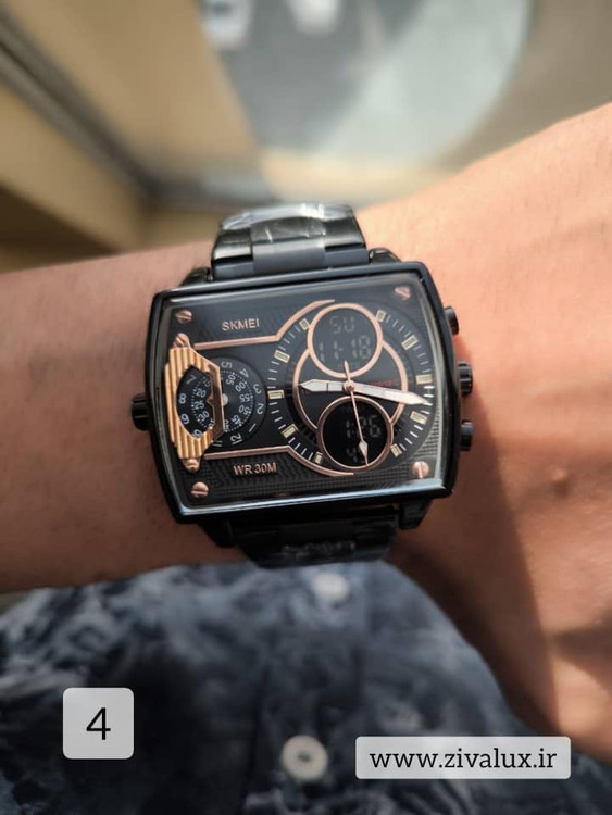 ساعت اسکمی مدل 2229 با قاب مربعی شکل و ترکیب نمایشگر آنالوگ و دیجیتال، طراحی متفاوتی نسبت به بیشتر ساعتهای کلاسیک دارد. این طراحی خاص باعث میشود ساعت هم جلوهای مدرن و اسپرت داشته باشد و هم برای استایلهای رسمی مناسب باشد.