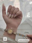 اولین نکتهای که در این ساعت توجه شما را جلب میکند، قاب نگینکاری شدهی آن است. نگینها با ظرافت خاصی روی قاب چیده شدهاند و جلوهای براق و لوکس به ساعت میدهند. بند استیل ضدزنگ نیز با طراحی خوشفرم، احساس راحتی و جذابیت بیشتری ایجاد میکند.
