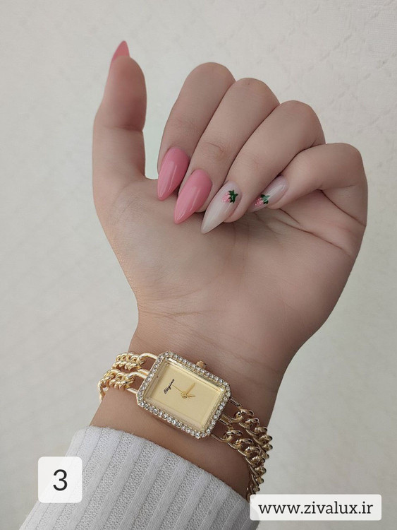 درخشش نگینهای ظریف دور قاب، جذابیت ساعت را چند برابر کرده و جلوهای لوکس و منحصر به فرد به مچ شما میبخشد.