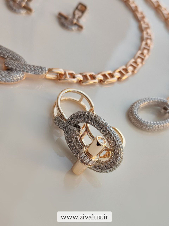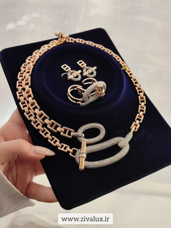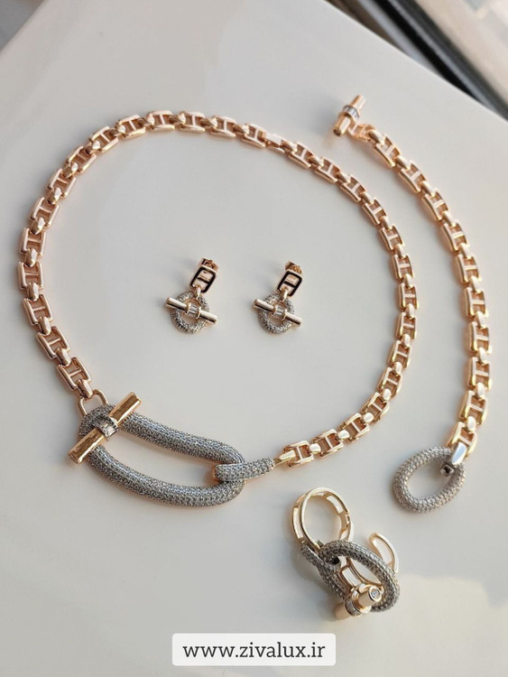 سرویس زنانه مارک هرمس HERMES نگین دار قفل تی T آبکاری طلا