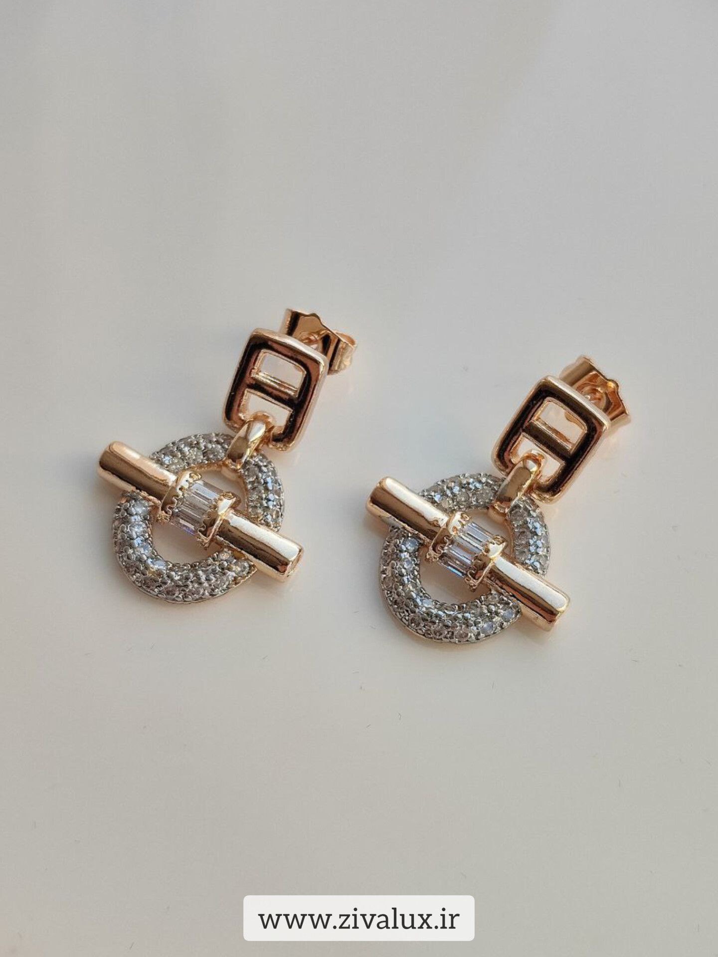 سرویس زنانه مارک هرمس HERMES نگین دار قفل تی T آبکاری طلا