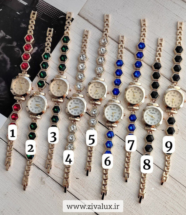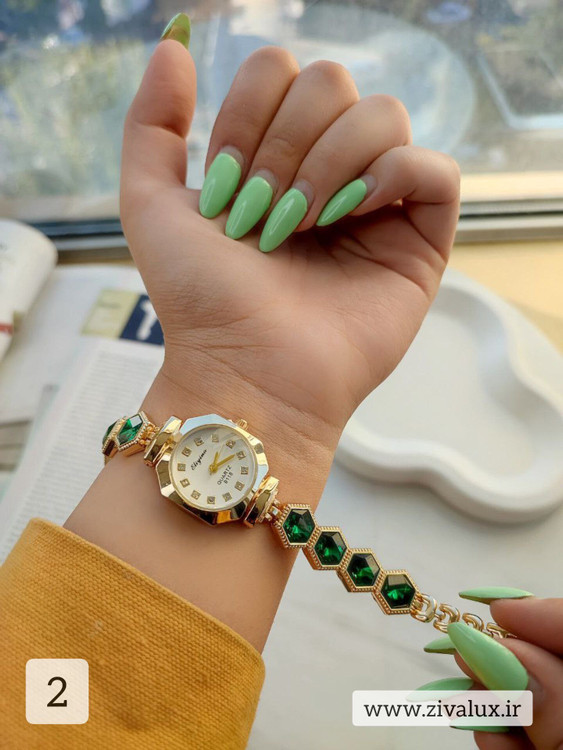 💫 طراحی خاص و درخشان: بند نگیندار با فرم ششضلعی و قاب دور نگین، ظاهری لوکس و چشمنواز به ساعت داده است.
