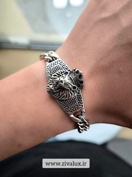 🔍 نقد و بررسی دستبند استیل شیر سلطنتی – نقرهای با بند کارتیر