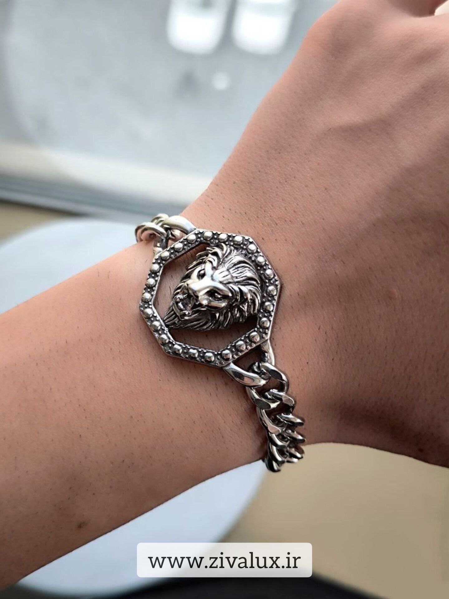 این دستبند با طراحی شیر کلاسیک و بند کارتیر، ترکیبی از قدرت و ظرافت را ارائه میدهد. جزئیات دقیق نقش شیر و جلای نقرهای بند باعث شده است که دستبند چشمنواز و لوکس به نظر برسد.