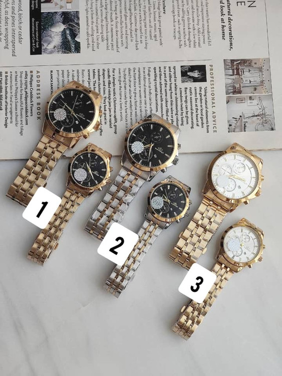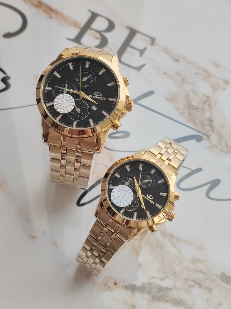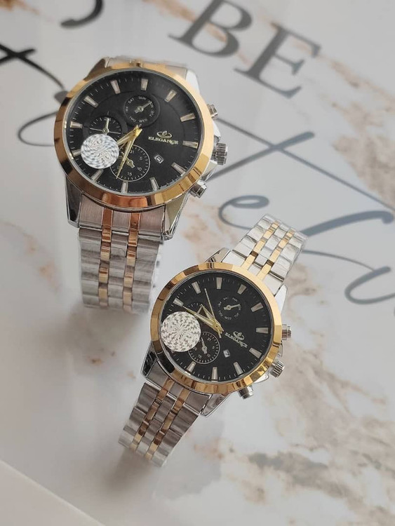 ست ساعت مردانه و زنانه الگانس طرح سه موتوره مدل بند استیل