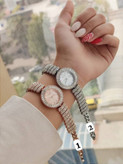 بند استیل ضد زنگ همراه با نگینهای پر زرق و برق، دوام خوبی را تضمین میکند. قفل این ساعت محکم طراحی شده تا در استفاده روزمره یا مجالس نگرانی از بابت باز شدن ناگهانی وجود نداشته باشد.