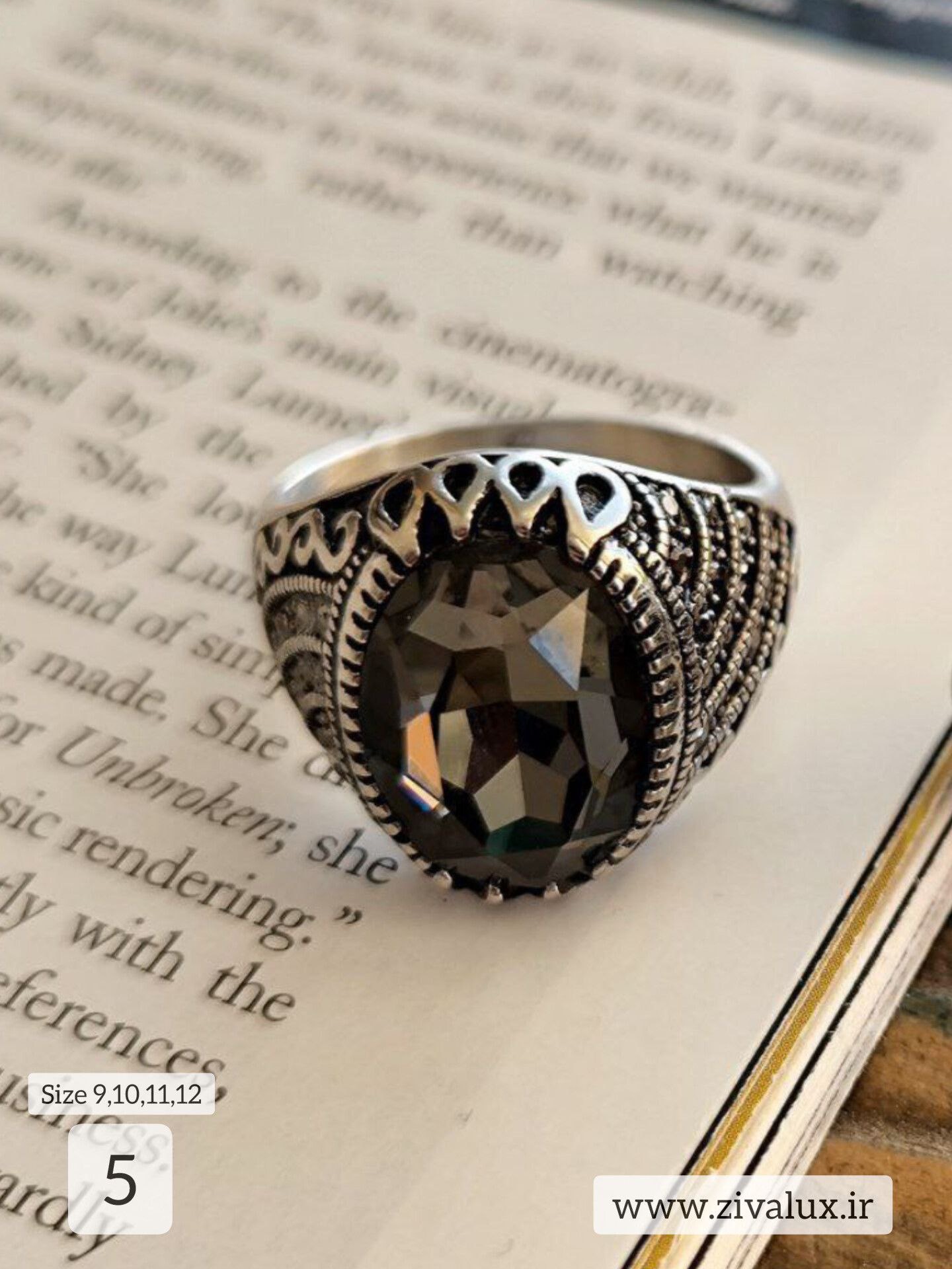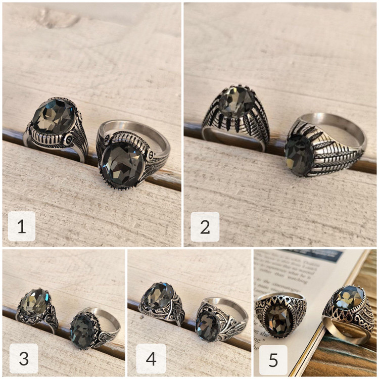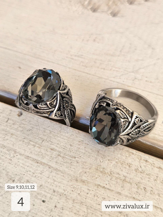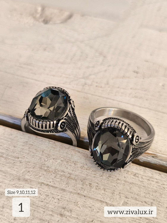 انگشتر مردانه نگین دودی تراش خورده استیل STEEL