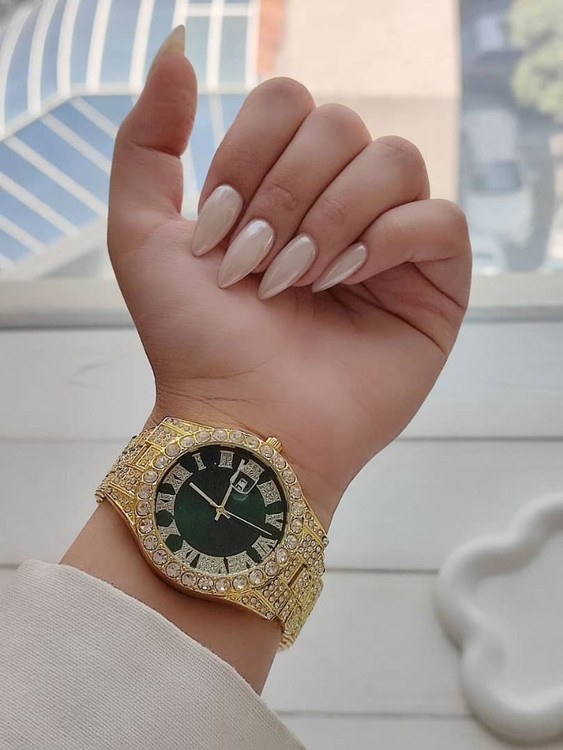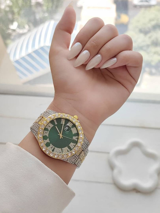 طراحی این مدل با دقت و ظرافت بسیار بالا انجام شده و نگینهای درخشان به کار رفته روی قاب و صفحه ساعت، آن را به انتخابی عالی برای مجالس رسمی، مهمانیهای خاص و حتی استایل روزمرهی لاکچری تبدیل کرده است. استفاده از متریال باکیفیت در ساخت ساعت رولکس نگیندار باعث شده تا دوام و ماندگاری بالایی داشته باشد و سالها همراه شما باشد.