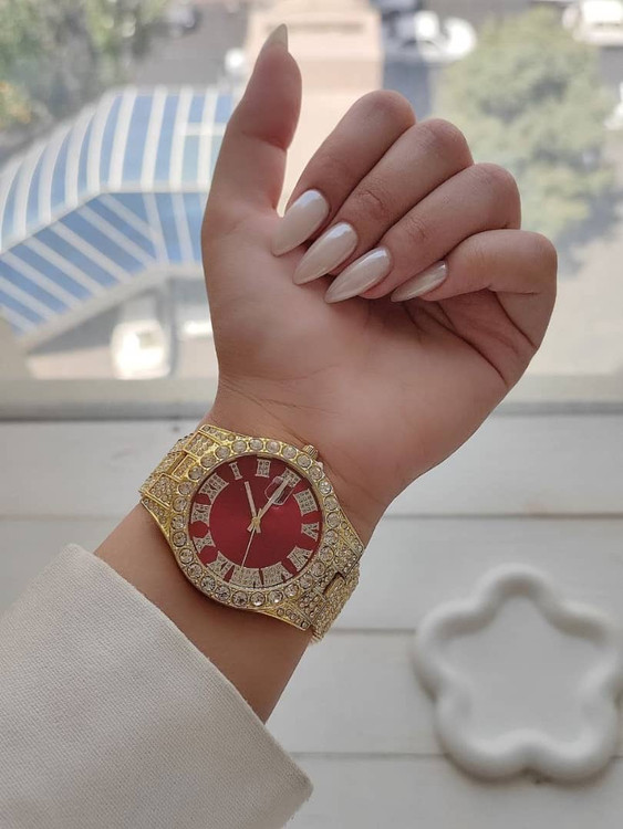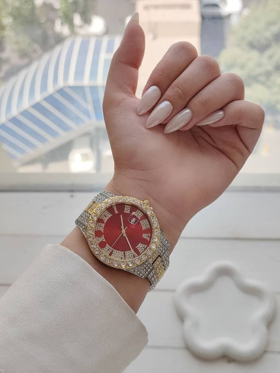 در نگاه اول، جلوهی بینظیر نگینهای درخشان روی قاب و صفحه ساعت، توجه هر بینندهای را به خود جلب میکند. طراحی این مدل به گونهای است که هم برای استایل رسمی و هم برای استایل لاکچری روزمره کاملاً مناسب است.