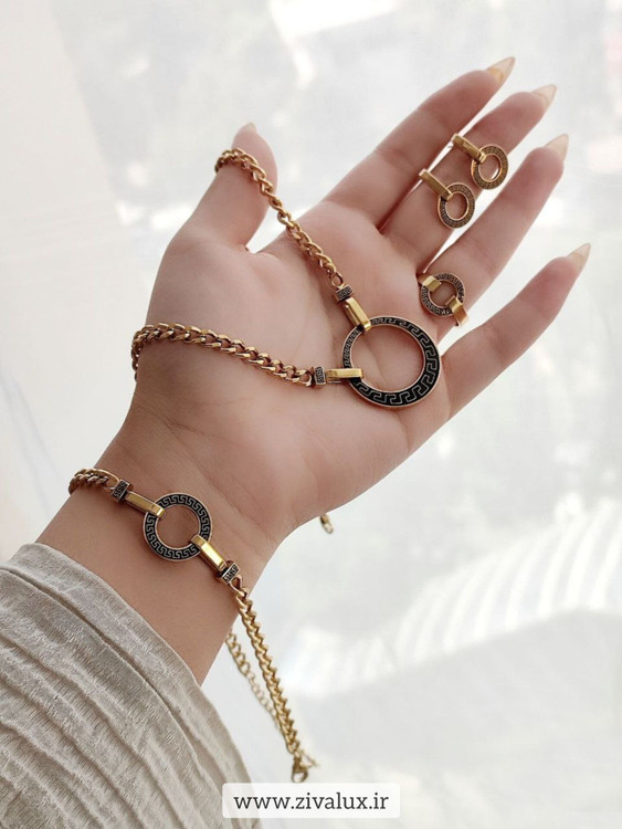 این سرویس شامل گردنبند، دستبند، گوشواره و انگشتر است تا یک ست کاملاً هماهنگ و چشمنواز داشته باشید. حلقهی نمادین ورساچه با نقشونگار یونانی، جلوهای خاص و باوقار به هر استایلی میبخشد و شما را تبدیل به مرکز توجه خواهد کرد. ✨👑