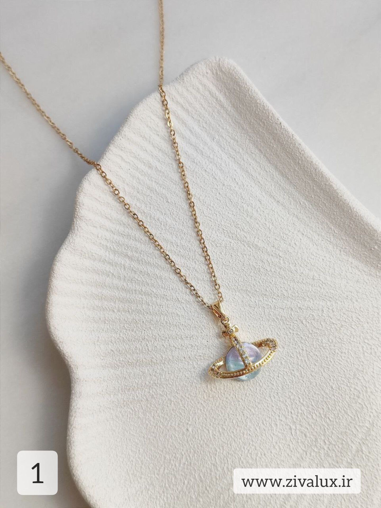 اولین چیزی که توی این گردنبند به چشم میاد، طرح منحصر به فرد سیاره زحل هست.