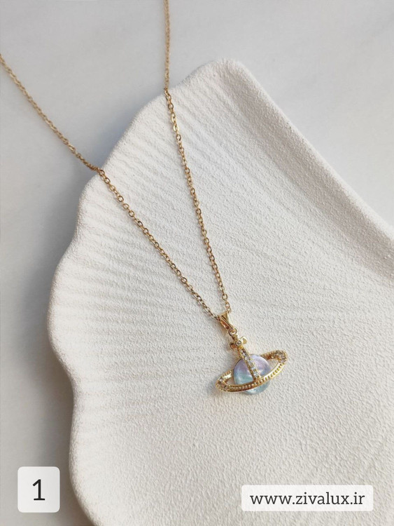 این گردنبند با الهام از سیاره زحل طراحی شده؛ نشانی از رازآلودگی، زیبایی و جذابیت آسمان شب.