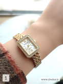 اولین چیزی که در این ساعت جلب توجه میکند، قاب مستطیلی با نگینهای درخشان است. این نگینها در نور، برق چشمگیری ایجاد میکنند و باعث میشوند ساعت روی دست، جلوهای لاکچری و خاص داشته باشد. برای خانمهایی که عاشق ظرافت و درخشندگیاند، این ویژگی نقطه قوت بزرگ محسوب میشود. ✨🌟