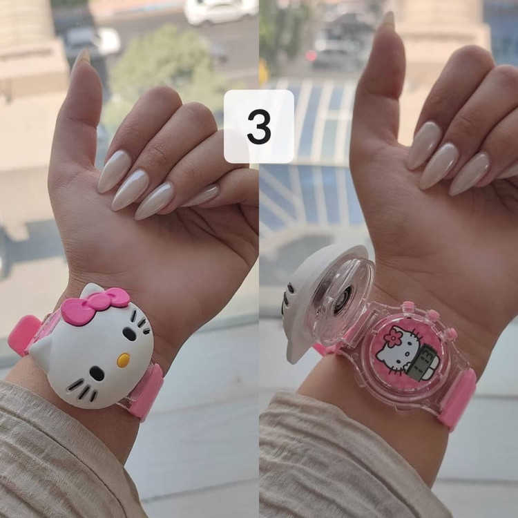 ساعت مچی دخترانه طرح کیتیkitty صفحه چرخشی سه بعدی