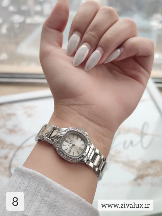 ترکیب ظریف قاب و بند استیل با فرم زنانه، باعث شده این ساعت روی دست بسیار خوشفرم و چشمنواز باشد 🤍