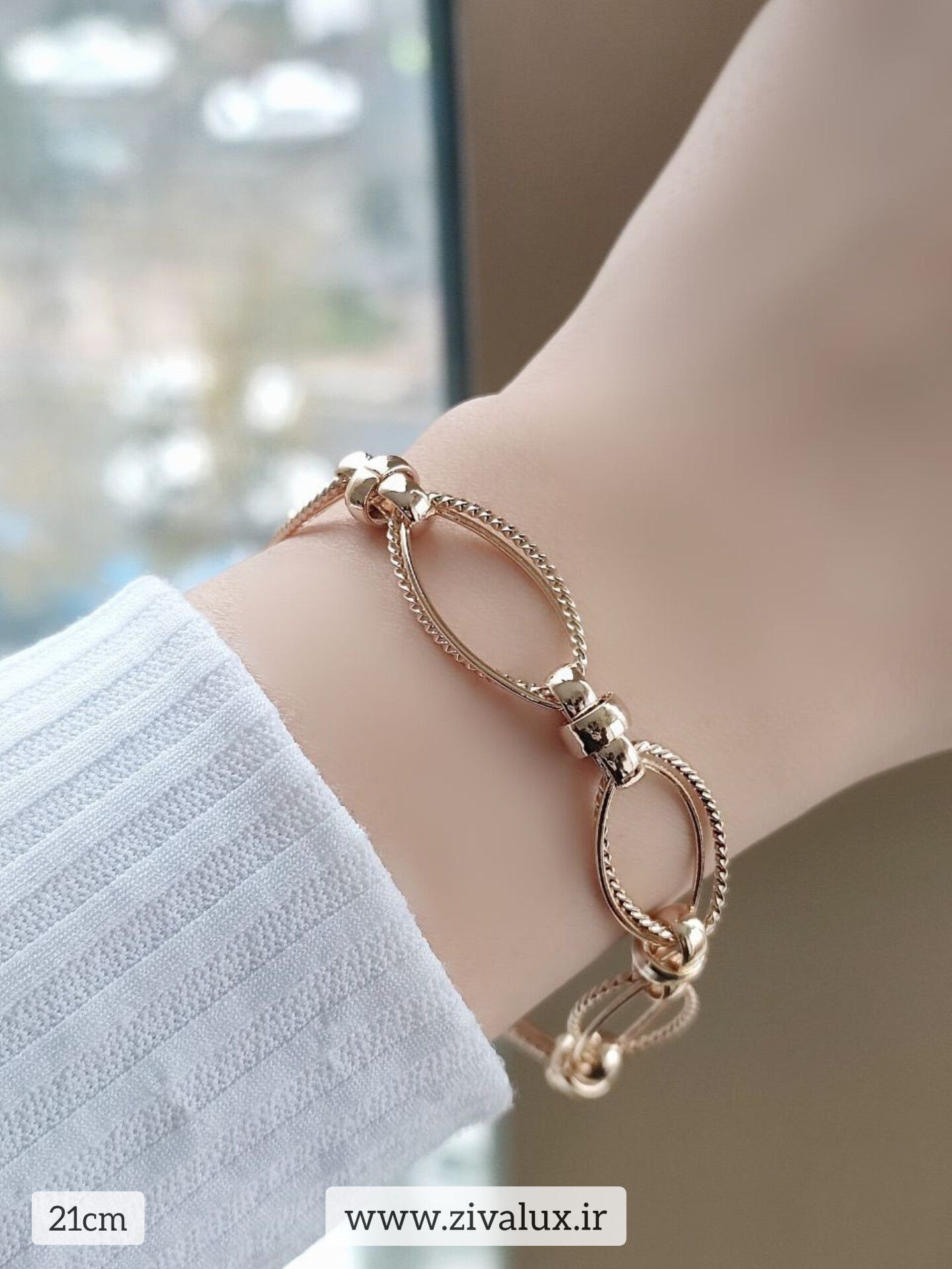 در نگاه اول، طراحی خاص و منحصربهفرد این دستبند توجه را جلب میکند. حلقههای بیضیشکل با بافت ظریف و براق، ترکیبی از سادگی و لوکس بودن را به نمایش میگذارند 😍