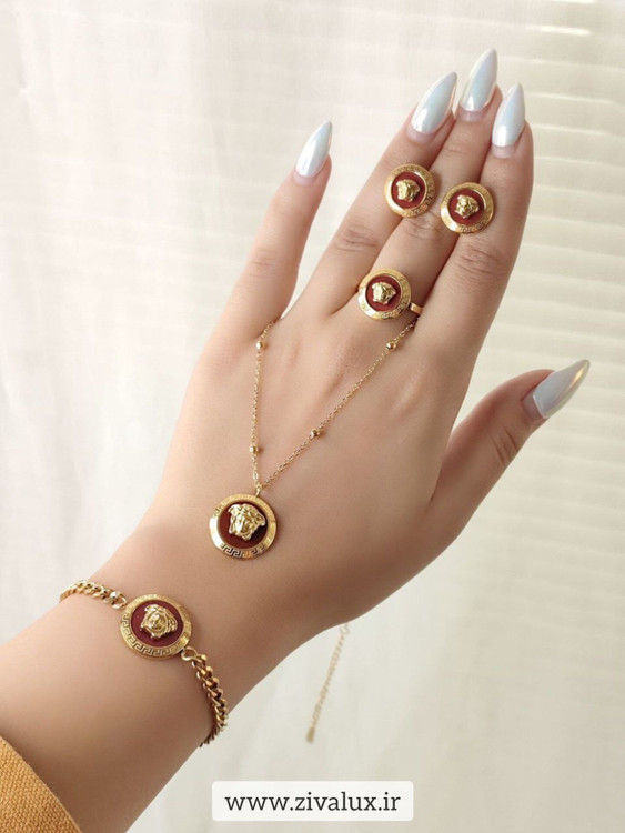 سرویس استیل زنانه طرح ورساچه VERSACE (گردنبند+دستبند+گوشواره+انگشتر)