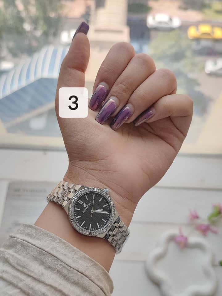 این ساعت با قاب نگیندار براق و بند استیل ضد حساسیت، جلوهای بسیار خاص و درخشان دارد. صفحههای متنوع در رنگهای آبی، سبز، مشکی، سفید و صورتی باعث شده که برای هر سلیقه و استایلی گزینهای مناسب وجود داشته باشد. رنگبندی جذاب آن، بهویژه برای خانمهایی که به هماهنگی ساعت با لباس و استایلشان اهمیت میدهند، یک امتیاز ویژه است.