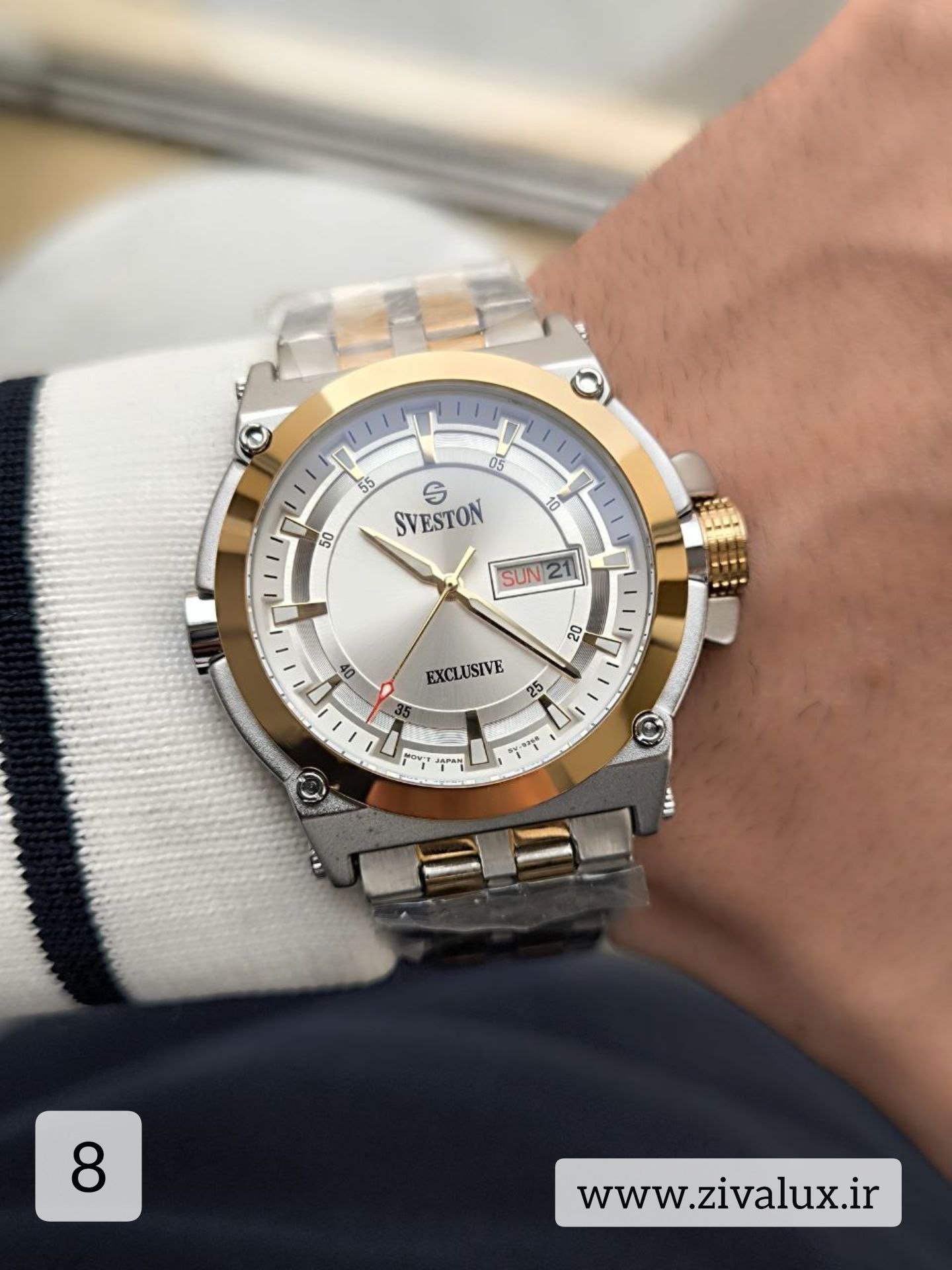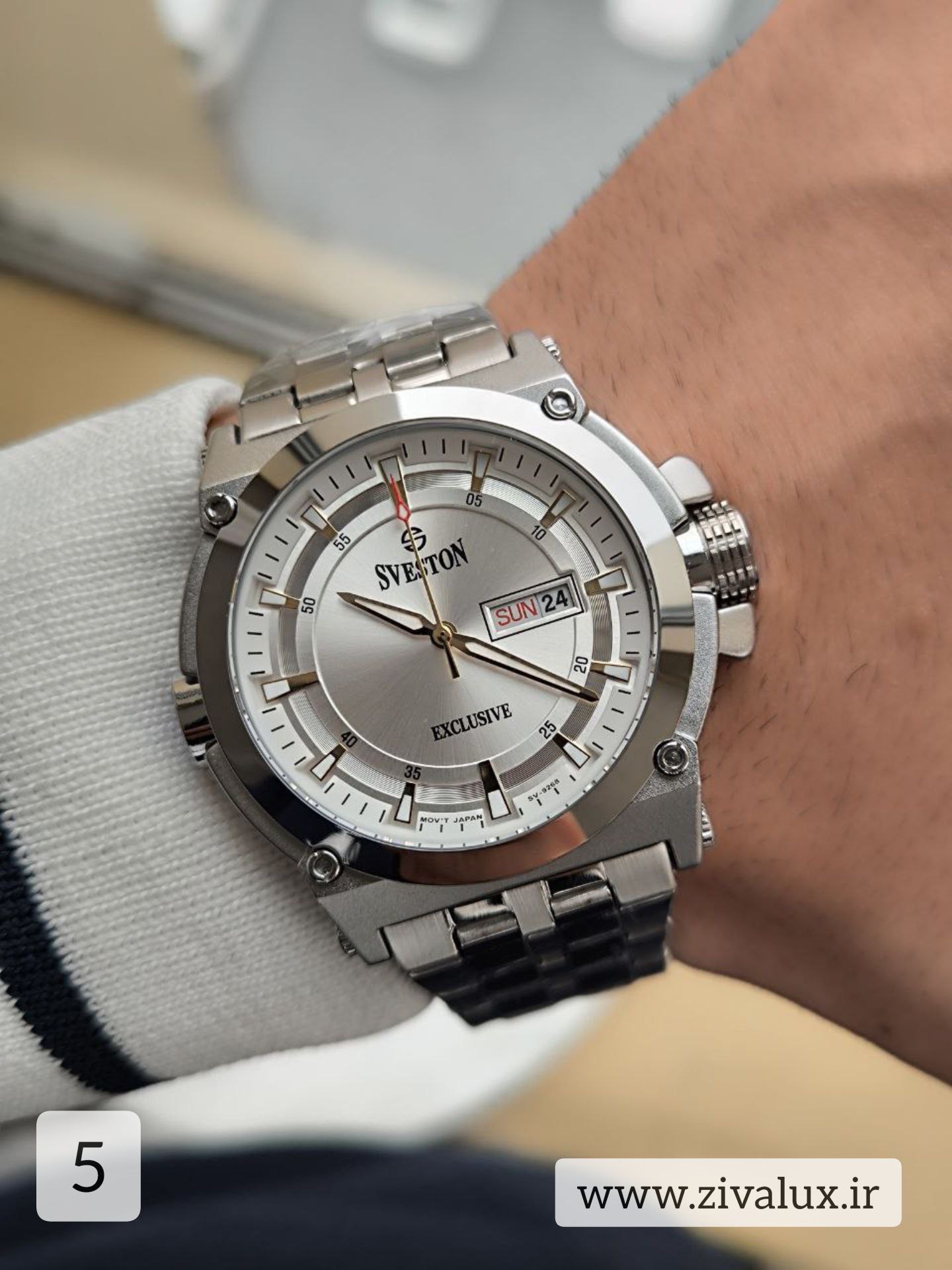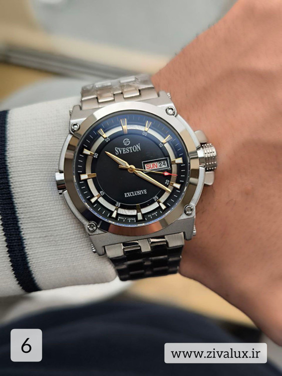 ساعت مچی مردانه SVESTON با طراحی لوکس، موتور ژاپنی، دو تقویم کاربردی و بدنهی استیل باکیفیت، انتخابی هوشمندانه برای استایل رسمی و روزمره شماست.