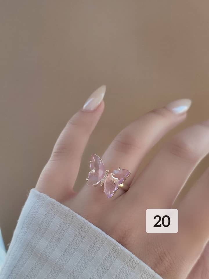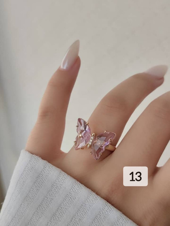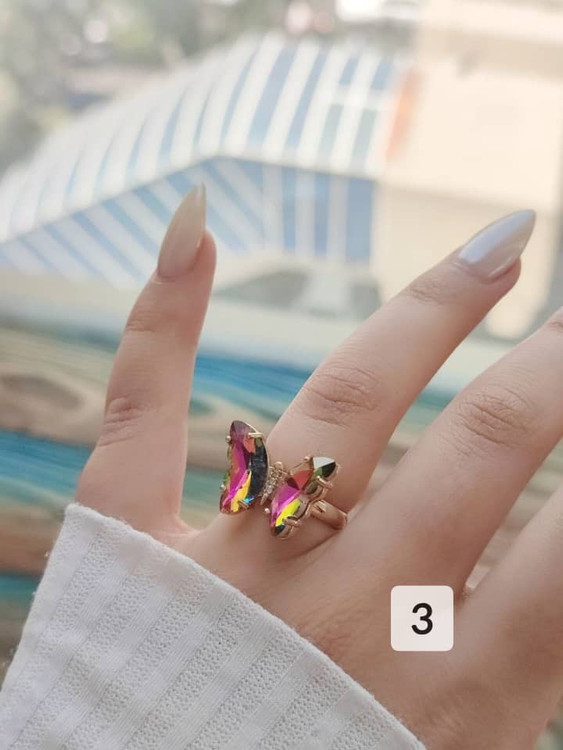 نقد و بررسی انگشتر دخترانه طرح پروانه کریستالی فری سایز