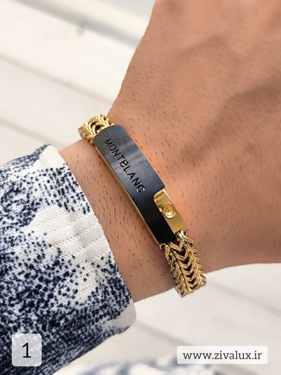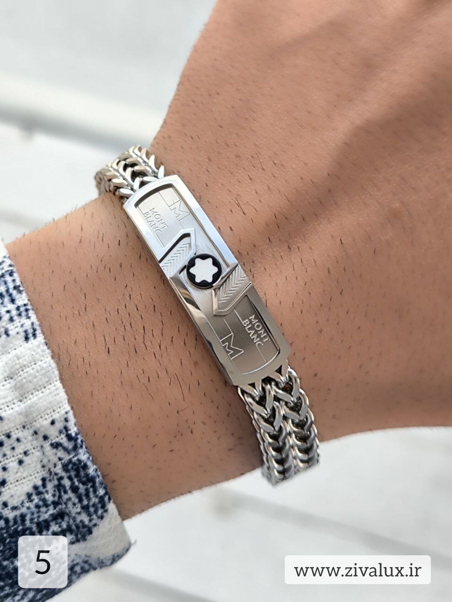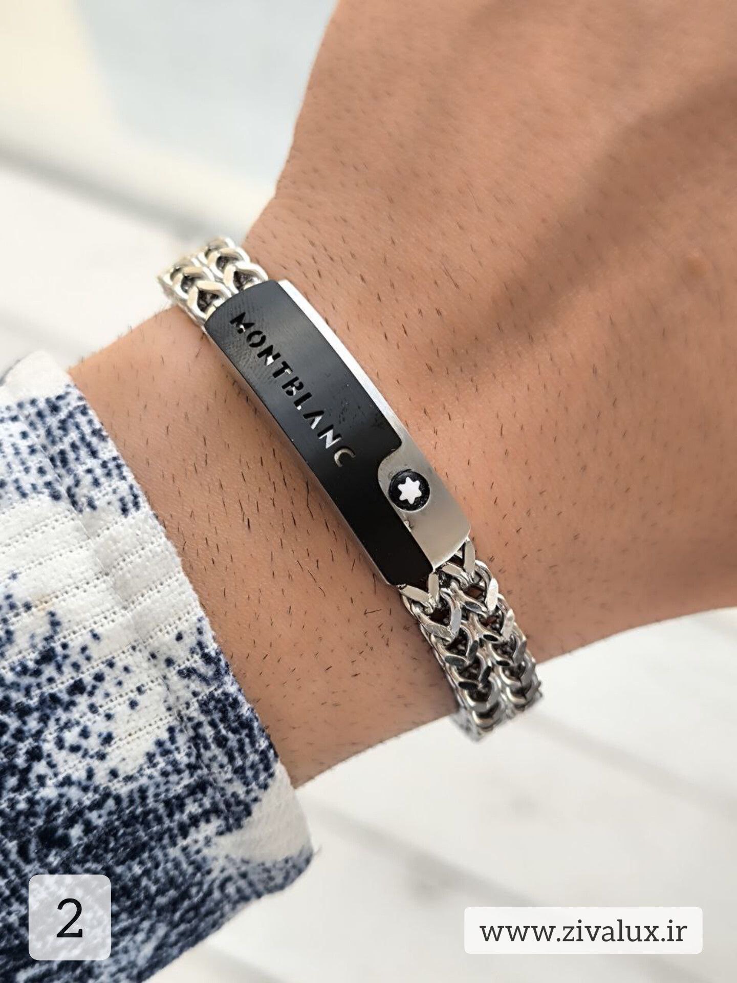 دستبند استیل بافت مردانه طرح مونت بلک MONT BLANC