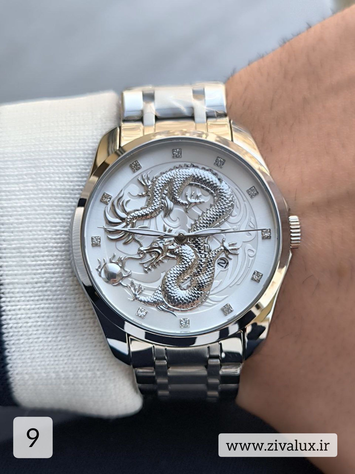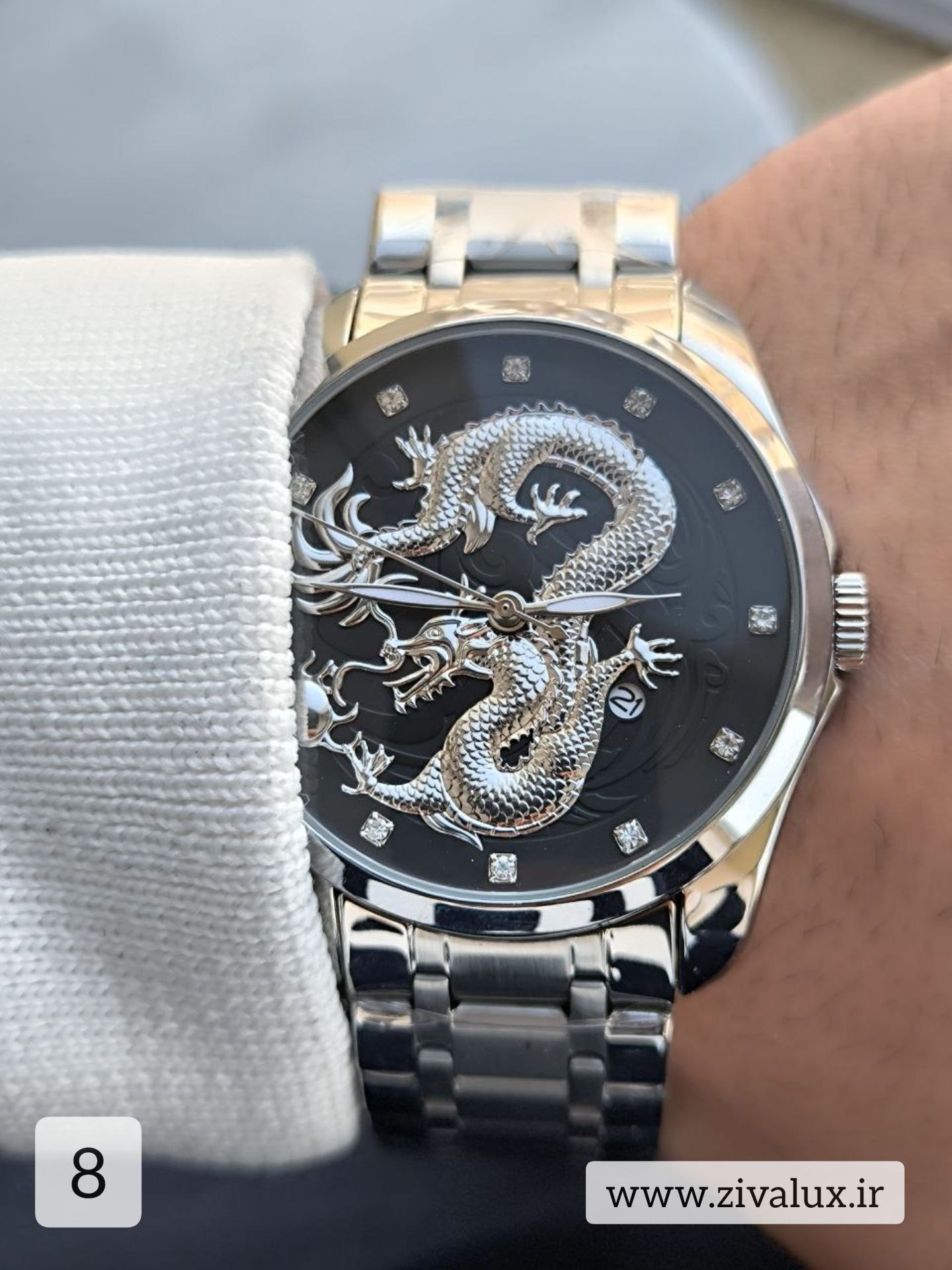 اولین چیزی که در این ساعت جلب توجه میکند، طرح برجسته و هنرمندانه اژدها روی صفحه است. نمادی از قدرت، جسارت و اعتمادبهنفس که این مدل را به گزینهای خاص برای آقایان متفاوتپسند تبدیل کرده است 💥