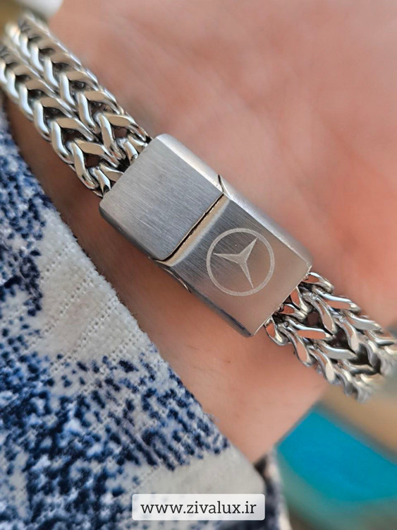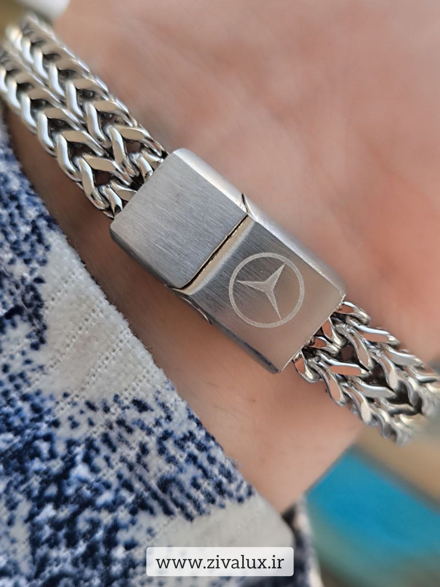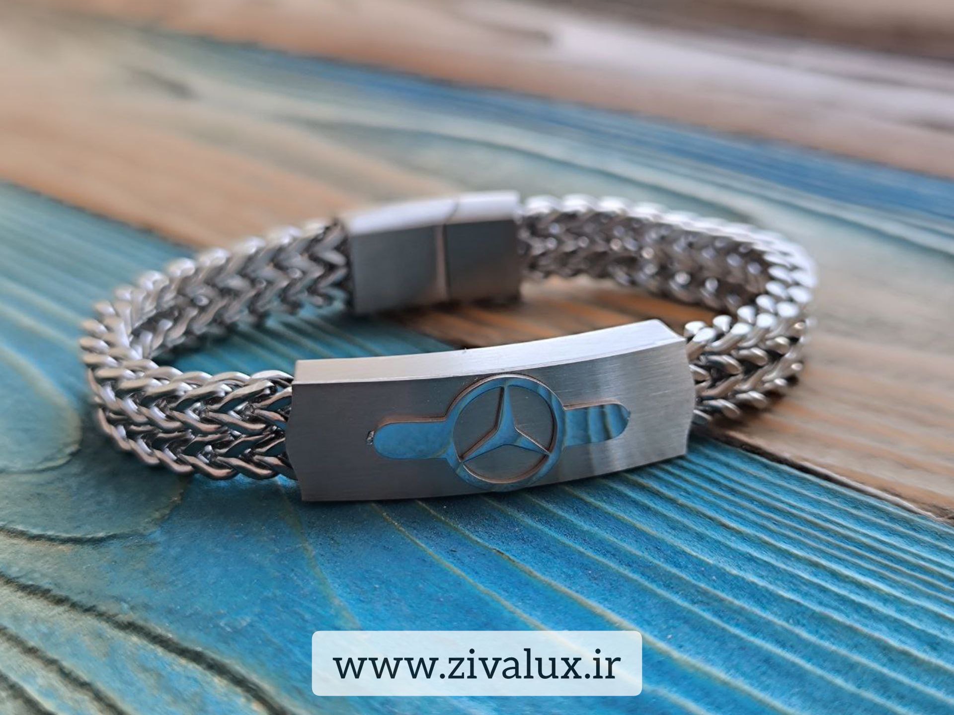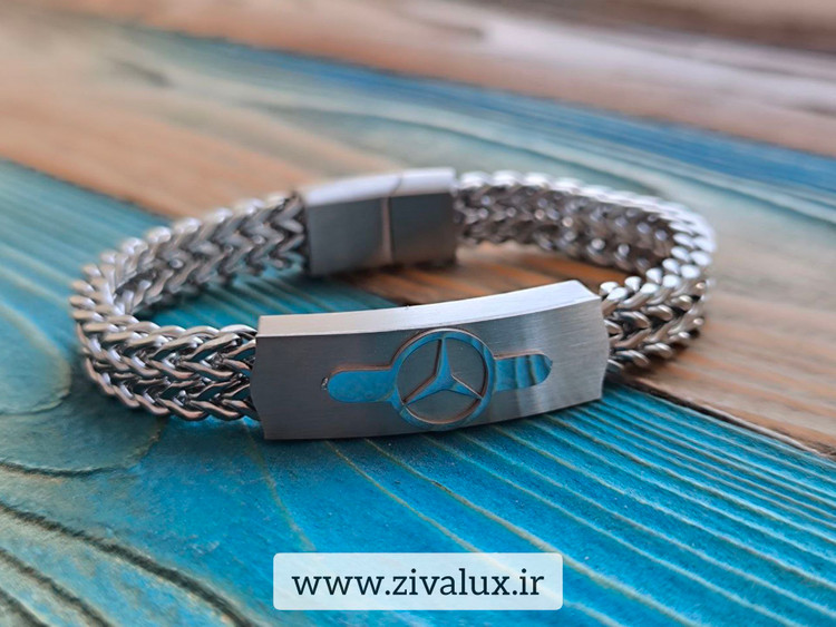 دستبند بافت مردانه استیل طرح بنز BENZ