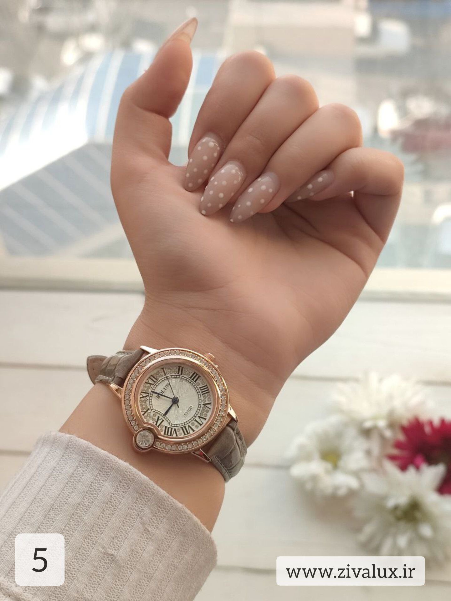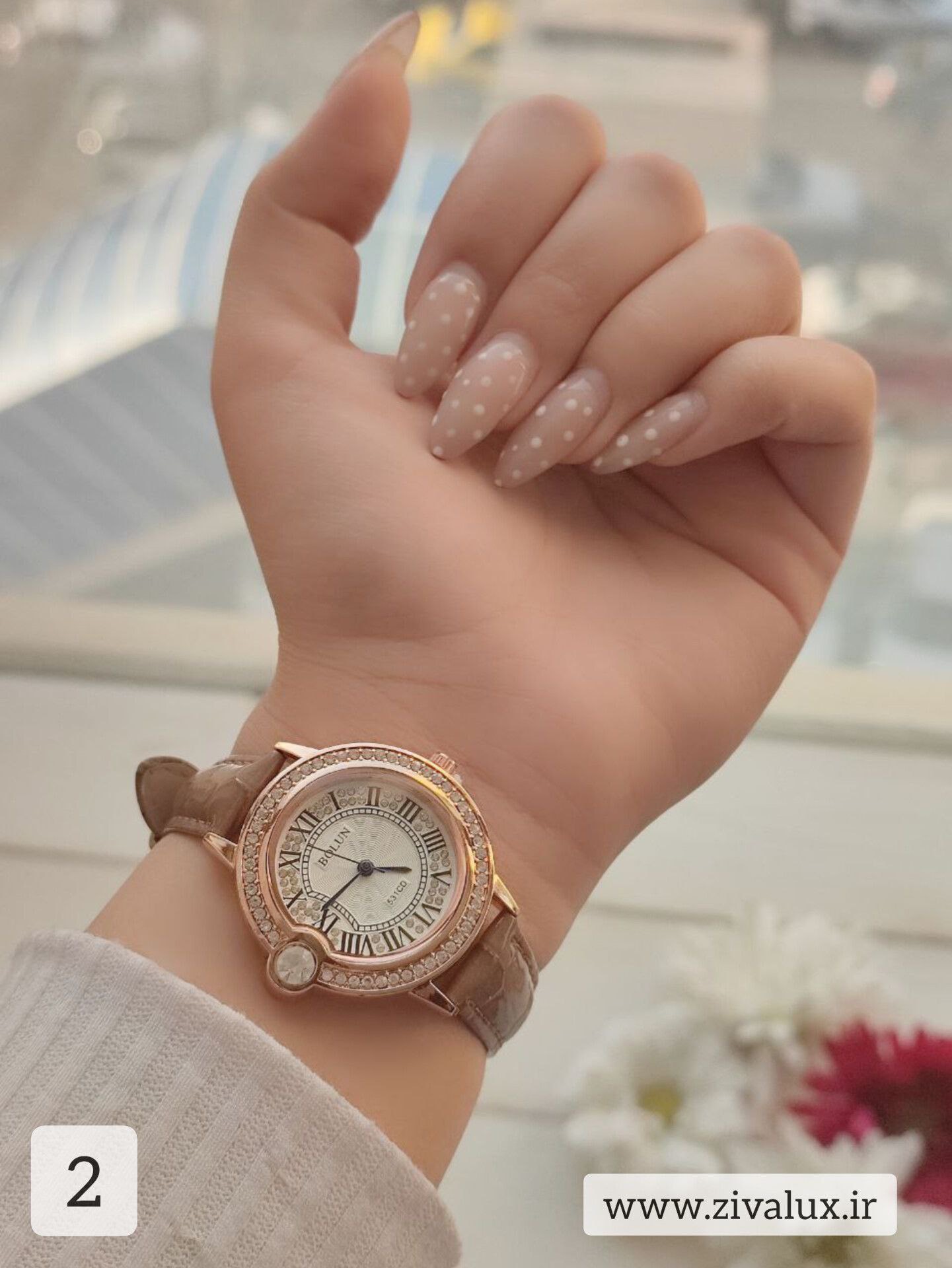 طراحی قاب با نگینکاری ظریف دور صفحه، جلوهای لوکس و زنانه به ساعت بخشیده و آن را به یک اکسسوری خاص و چشمگیر تبدیل کرده است ✨💖