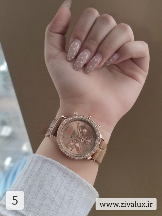 دور قاب این ساعت با نگینهای درخشان تزیین شده که جلوهای خاص و مجلسی ایجاد میکند 💖 انتخابی عالی برای استفاده روزمره و همچنین مهمانیها و استایلهای رسمی.