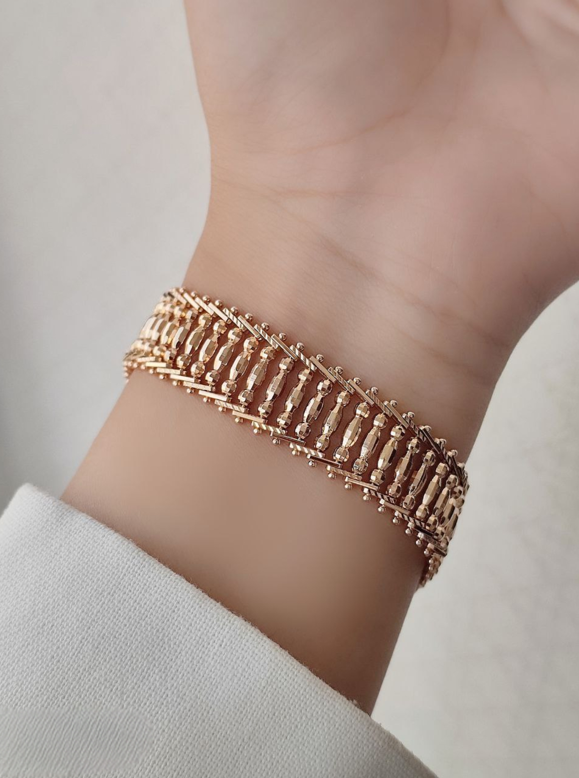 دستبند ژوپینگ پهن با طراحی مدرن و شیک، انتخابی عالی برای خانمهایی است که به دنبال استایلی خاص و متفاوت هستند. مدل نگیندار آن با درخشش بینظیر، جلوهای مجلسی و لوکس دارد، در حالی که مدل سادهاش بهراحتی با هر استایل روزمره یا رسمی ست میشود.