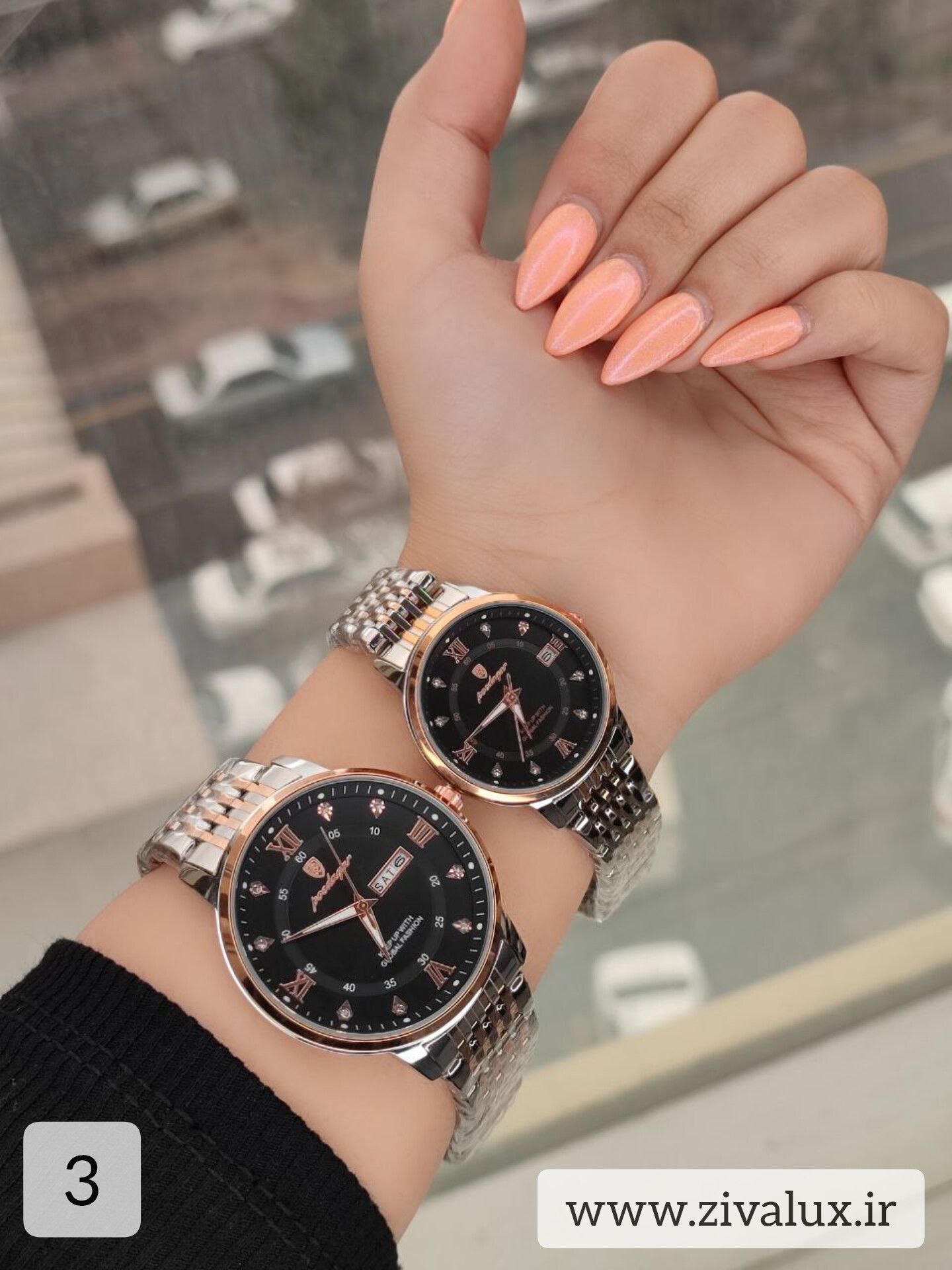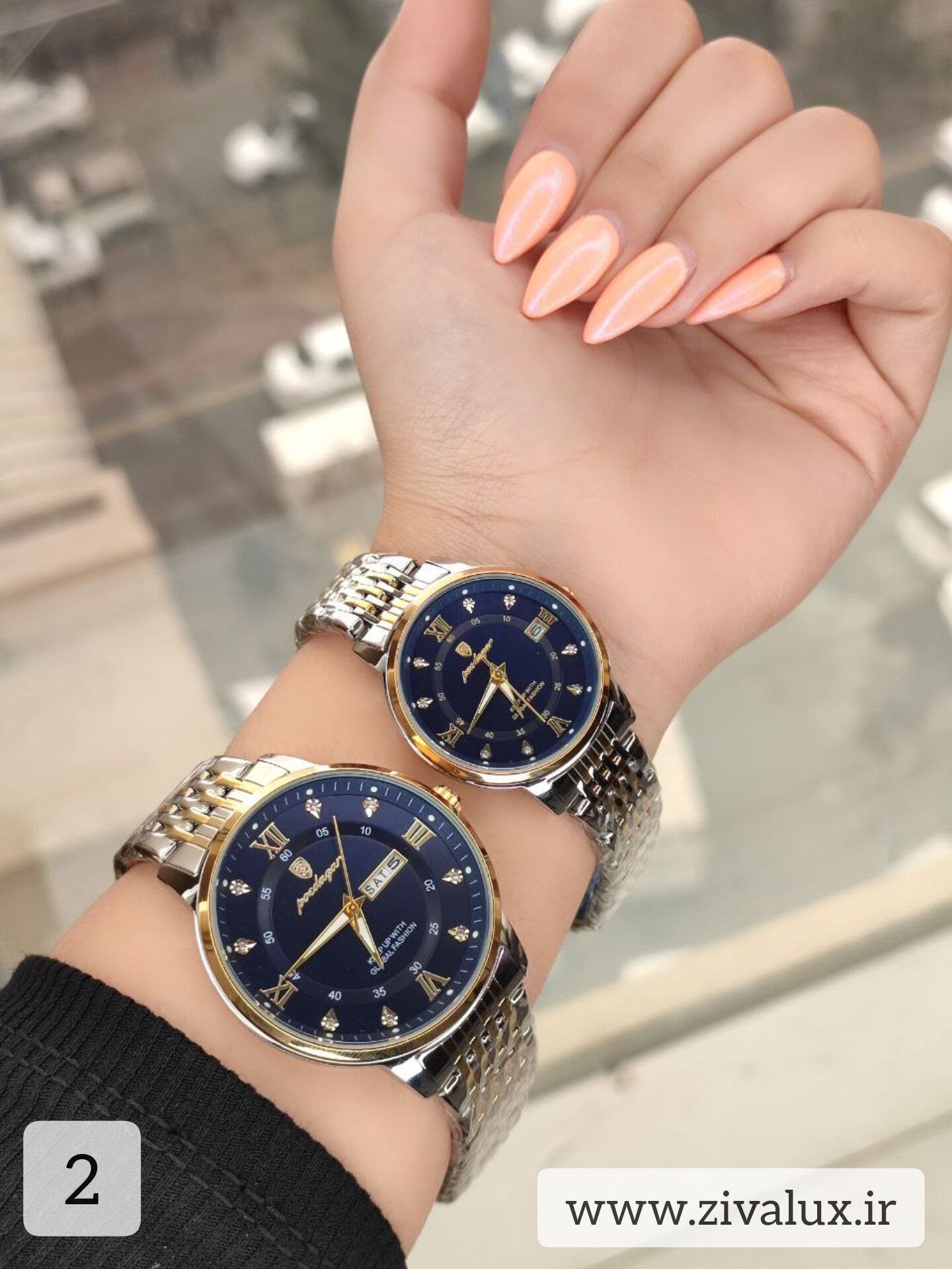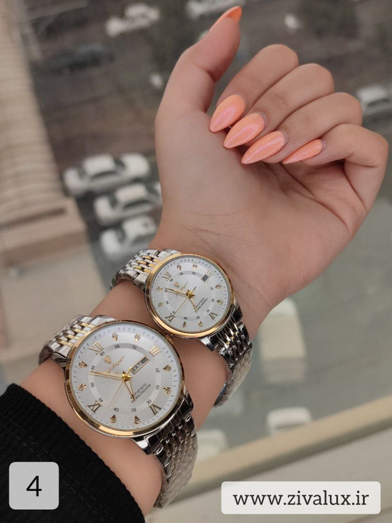 طراحی این ست بسیار شیک، هماهنگ و چشمگیر است. ترکیب استیل براق با صفحه تقویمدار، جلوهای لوکس ایجاد کرده که برای زوجهای خوشاستایل بسیار جذاب است.