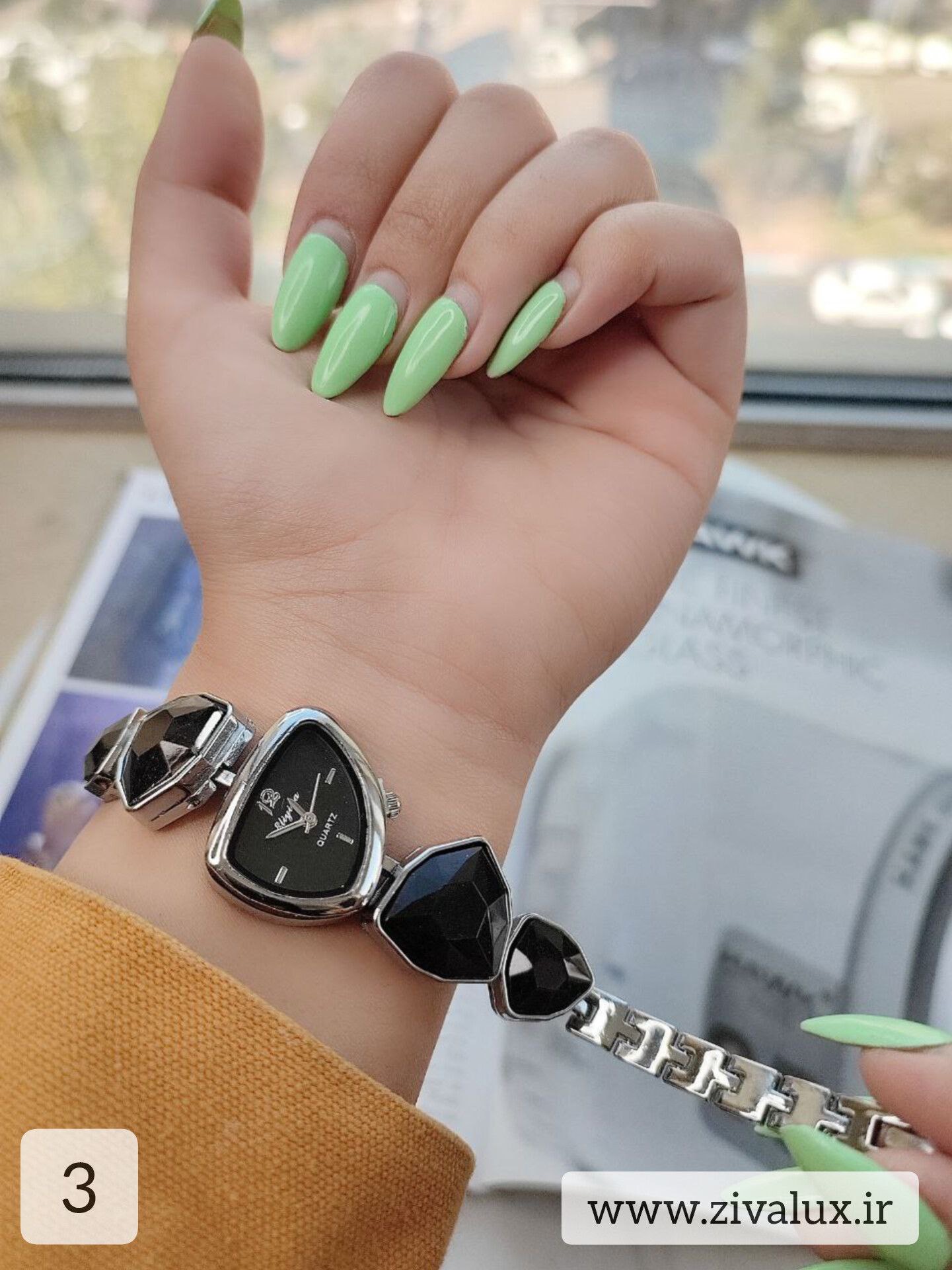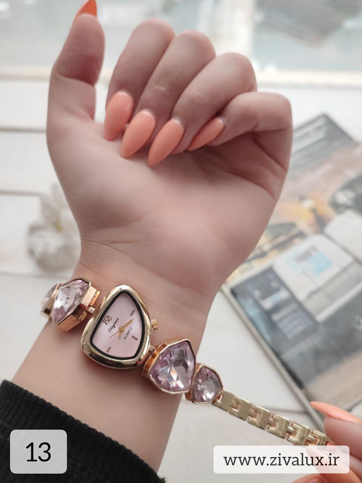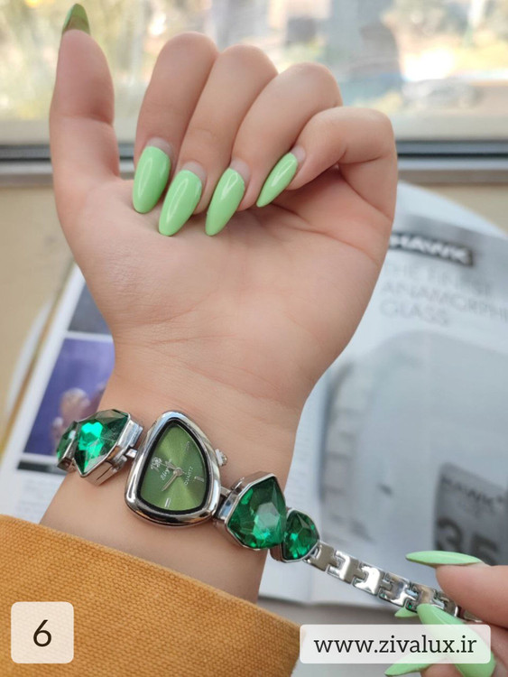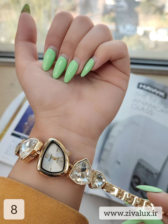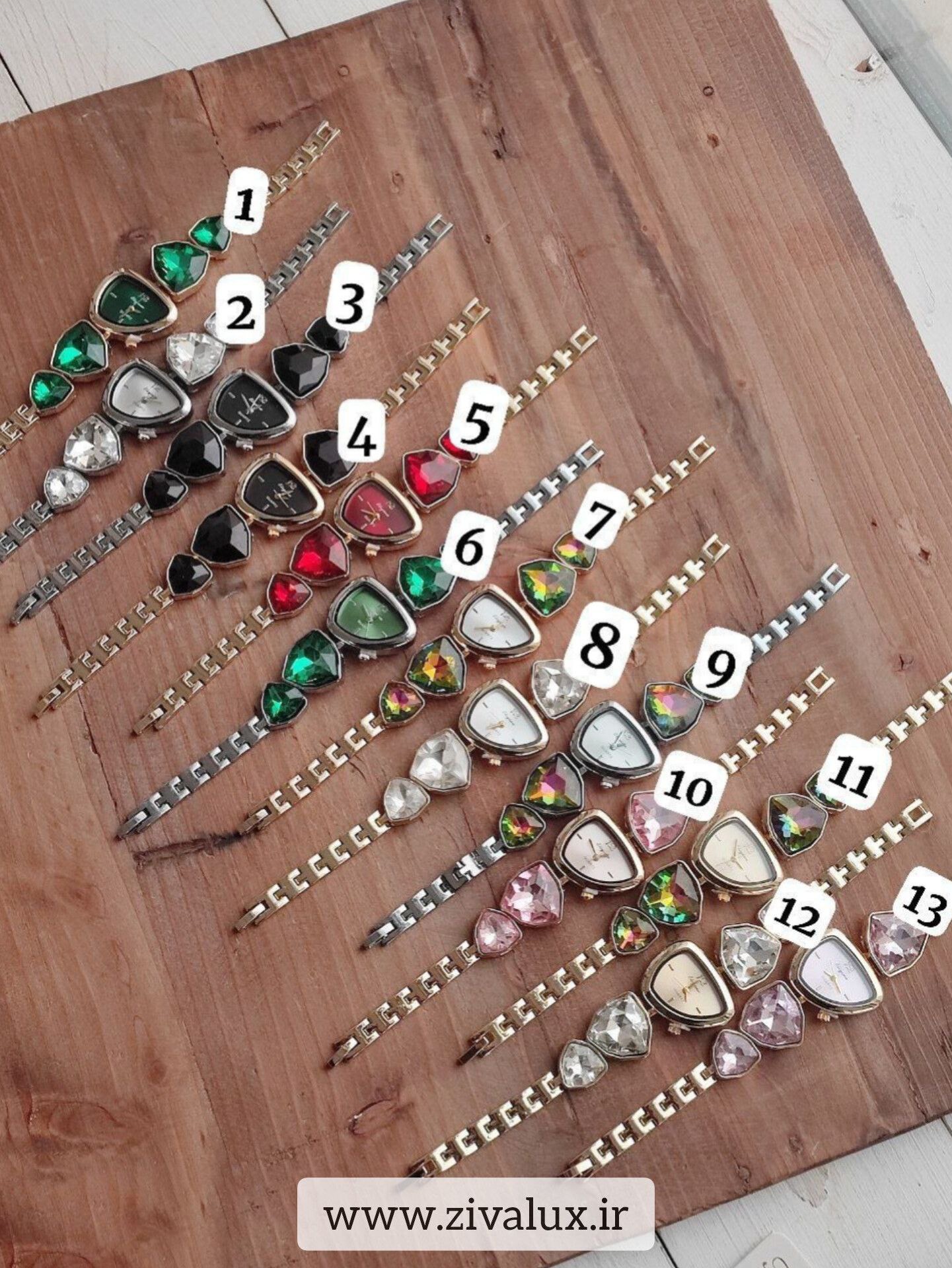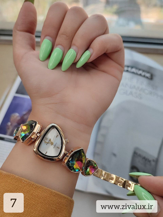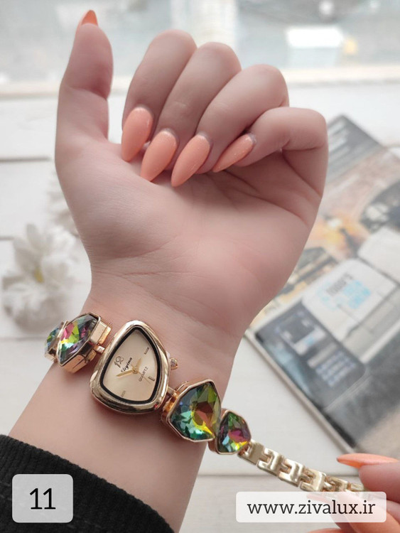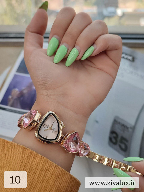 این مدل با طراحی رنگی و نگینهای ظریف، انرژی و لطافت را همزمان منتقل میکند. روی مچ دست بسیار شیک و دخترانه دیده میشود و در عین حال جلوهای لوکس دارد.