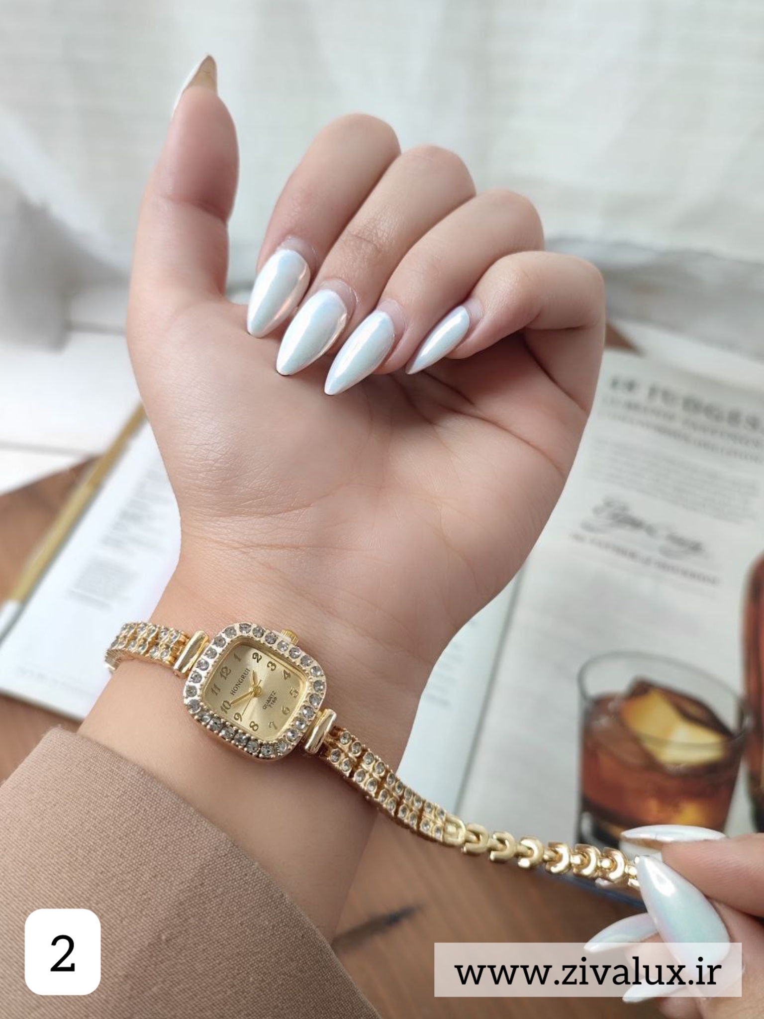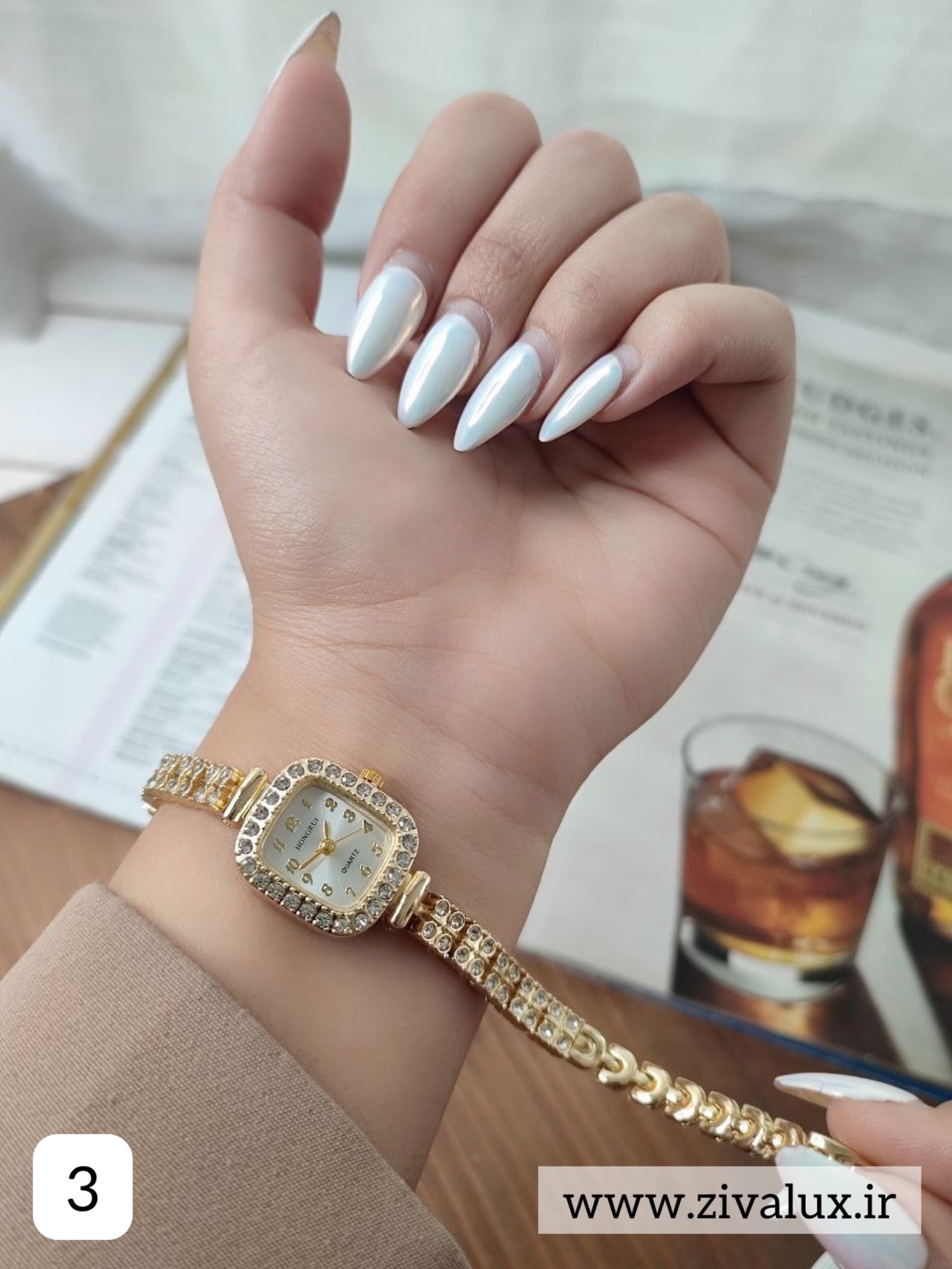 اگر دنبال یک ساعت زنانه شیک و درخشان هستی که جلوهای لوکس و مجلسی به استایل تو بدهد، HONGRUI نگین دار بهترین انتخاب است ✨💖