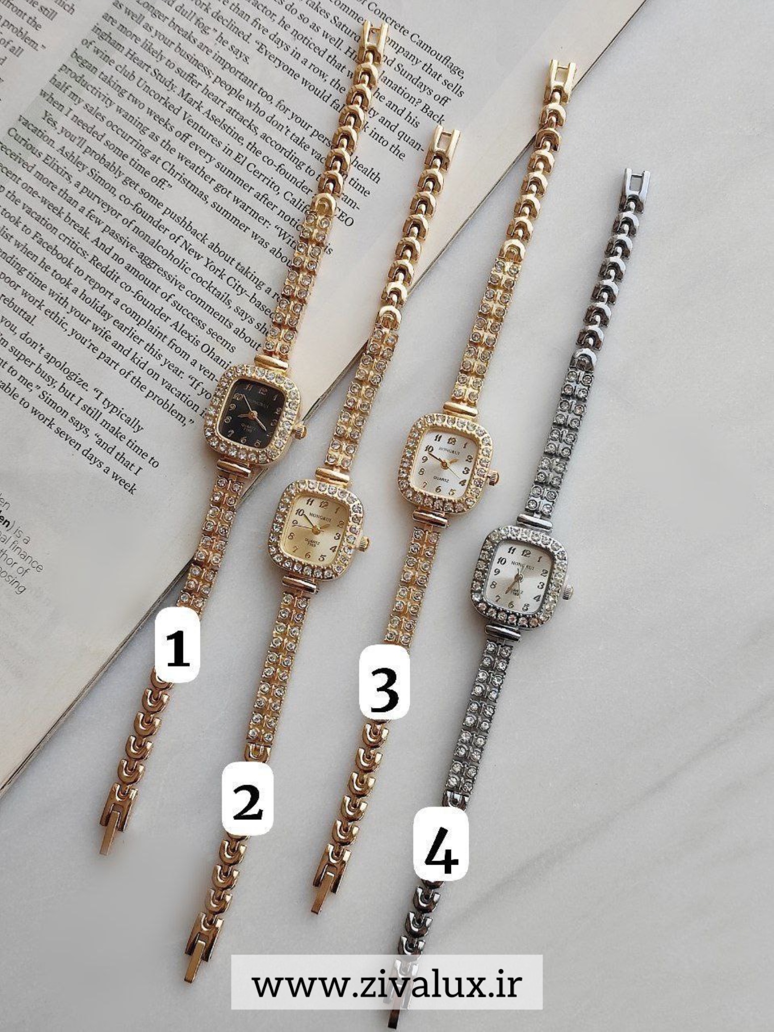 این مدل با بند و قاب فلزی براق و نگینهای درخشان، ظاهری زنانه و شیک به مچت میبخشد و در مهمانیها و مجالس توجه همه را به خود جلب میکند 👑💎