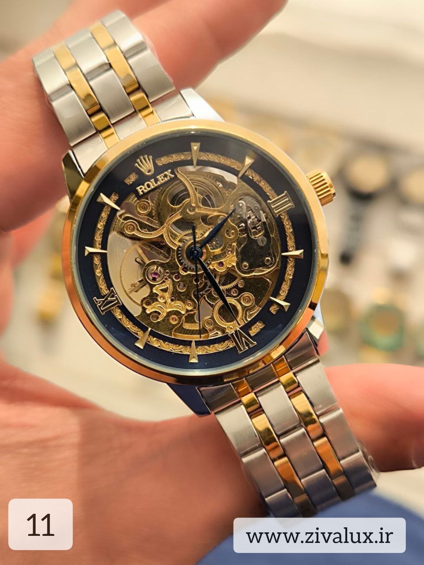 نمای پشت شیشهای این ساعت، زیبایی و جزئیات موتور اتوماتیک را نمایش میدهد 👀✨