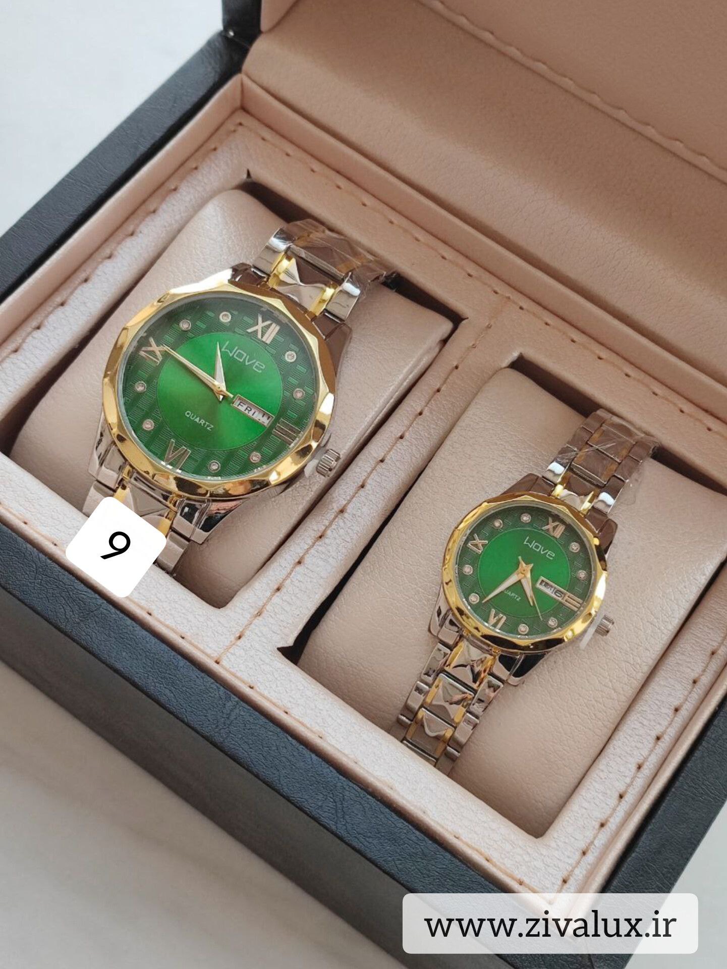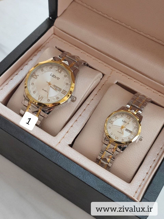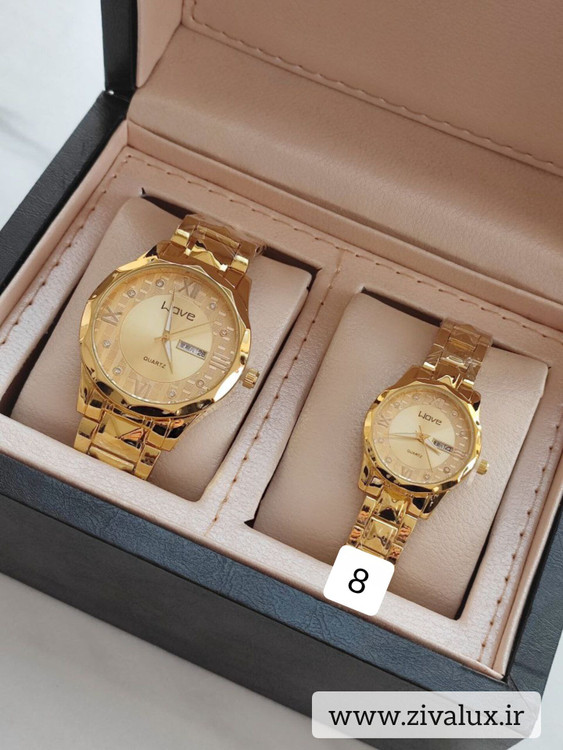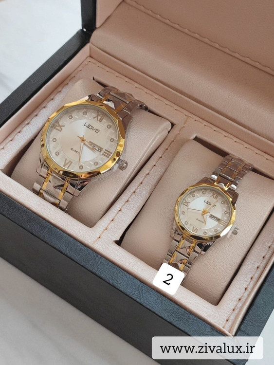 طراحی ست این مدل باعث ایجاد هماهنگی خاص بین زوجها میشود. اعداد نگینی جلوهای لوکس و جذاب به صفحه ساعت بخشیده است ✨