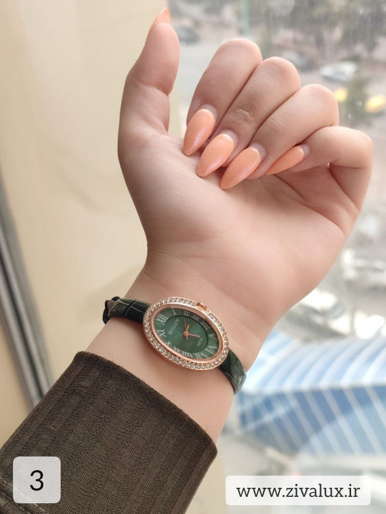 طراحی خاص صفحه بیضی جلوهای کلاسیک و زنانه ایجاد کرده و نگینهای ظریف دور قاب، درخشش فوقالعادهای به مچ دستت میبخشند 💎🌸