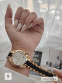 ساعتهای زنانه Michael Kors با قاب طلایی براق و بندهایی در رنگهای سفید، مشکی، قهوهای و رزگلد طراحی شدهاند. این ترکیب رنگی باعث میشود ساعت به راحتی با هر استایلی – چه رسمی و چه روزمره – هماهنگ شود.